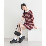 【着用サイズ ワンピース:F パンツ:M】レトロな雰囲気のボーダーデザインは、デニムとスタイリングしてメンズライクな着こなしに◎