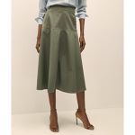 ボーダーTシャツにコットンサテンのスカートを合わせた、大人カジュアルなスタイリング。リネンシャツを羽織ることで、冷房対策や日差し除けにも活躍してくれる今の季節にぴったりなレイヤードスタイルです。