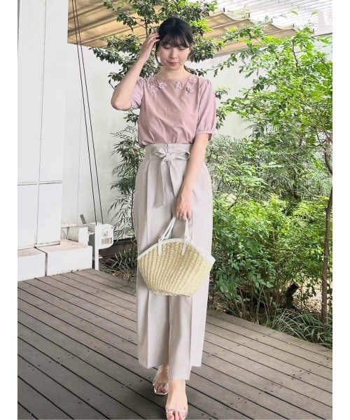 全体的に淡いカラーでまとめてフェミニンにこなした、大人のパンツコーデにしてみました♪