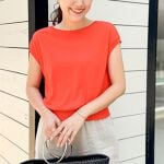 フレンチスリーブのきれいめニットTシャツでコーディネート