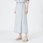 薄いブルーのスカートとホワイトのシャツで涼しげあるコーデに! よくやる片方だけシャツインして少しメリハリを!