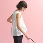 布帛素材で切り替えたペプラムデザインが、一枚で着映えするノースリーブカットソー。裾はハリのあるライトな素材で立体的なフレアデザインを表現することで、ふんわりと動きあるシルエットを実現しています。