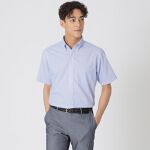 綿とポリエステル素材の形態安定素材を使用した半袖シャツです。通気性の良いメッシュ調素材のほどよい透け感のある薄手の生地で、肌離れも良いためクールビズに最適です。形態安定性があるため、ご家庭でのお手入れがしやすいのもうれしいポイントです。