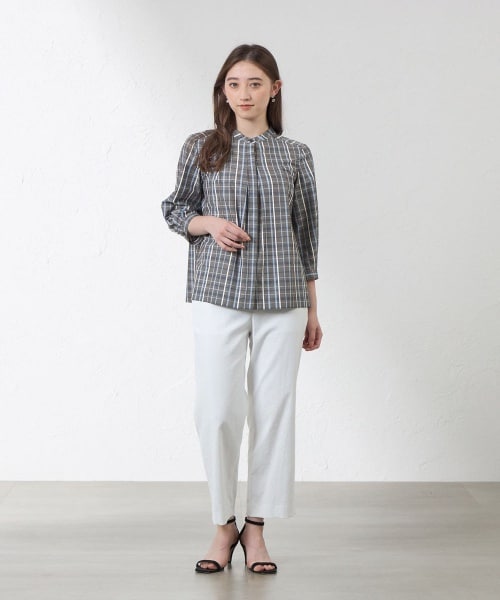 トップスはキュプラの柔らかくしなやかな風合いとリネンの清涼感を持ち、ポリエステルの強度でしわを軽減させたハイグレードな混紡素材です。接触冷感、紫外線対策の機能を持つ夏に嬉しい機能素材です。