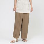 【パンツ】プリーツがポイントのワイドパンツ。ウエストゴム使用のイージーパンツです。【トップス】ゼブラ柄をガンメタリック、シルバー、ゴールドのカラーを用いて繊細に表現しています。