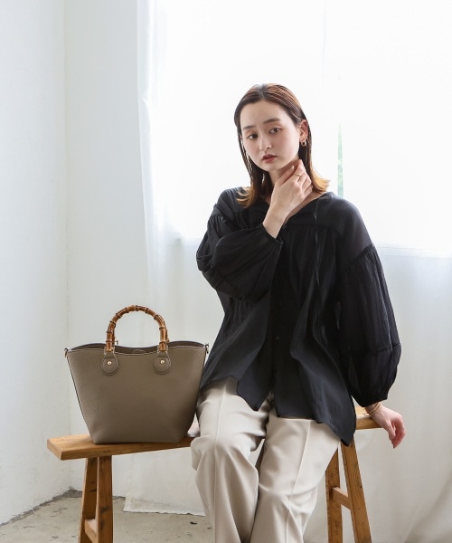【Bags】バンブーハンドルでナチュラルな風合いが、上品さとこなれ感演出するアクセントに。
