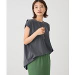 【着用サイズ いずれも:F】腕を上げても中が見えにくいデザインのチュニック。丈はヒップラインがしっかり隠れる長さです。