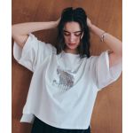 【着用サイズ Tシャツ:F スカート:F】ゆったりとしたボックスシルエットがこなれ感を演出するコットンTシャツ。幅広の袖が二の腕をさりげなくカバーしてくれます。UVカット加工も嬉しいポイント!