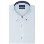 サックス市松格子織柄の生地に台衿内側の別布使いにボタン周りを同系色に統一しながらも、アクセントを添えた一枚は個性ある衿元を演出します。