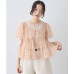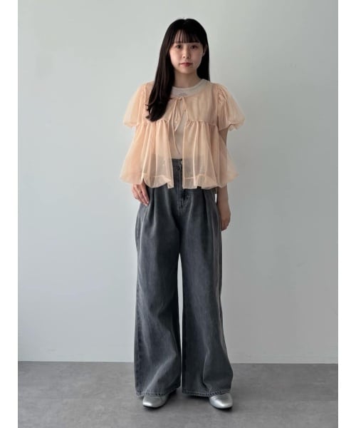 【着用サイズ トップス:F パンツ:S】セットアイテムのフェミニンカジュアルコーデです◎ふんわりとしたシアーブラウスが可愛い!タンクトップはフロントにロゴがさりげなく入っており、着回しにも重宝しそうです♪