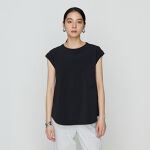 シアー感のあるシャツとボトムなのでインナーはマットなトップスを合わせて透け過ぎないようにしています。