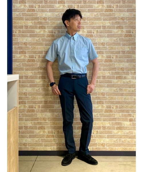 ミントグリーンの半袖シャツをご紹介します。 暑い夏でも見た目が爽やかな印象です。 ネイビーのスラックスで合わせてますが、グレーと合わせても爽やかです。