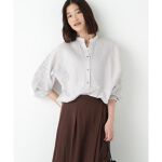 抜いてリラックス感のある着こなしをしたりボタンを閉じてお仕事着としてもさまざまなシーンで活躍する一枚です。 少しはり感のある素材でブラウジングするとボリュームがでて表情がでるブラウスです。