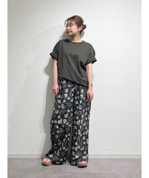 パンツはさらさらとした、とても薄手で涼しく着用できる素材です。落ち感があるため、オーバーサイズやロング丈のトップスとも好相性◎