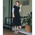 トレンドのダブルカラーがきちんと感があるので、お食事会などにも着ていただけるワンピース。 華やかな袖のリボンがポイントです