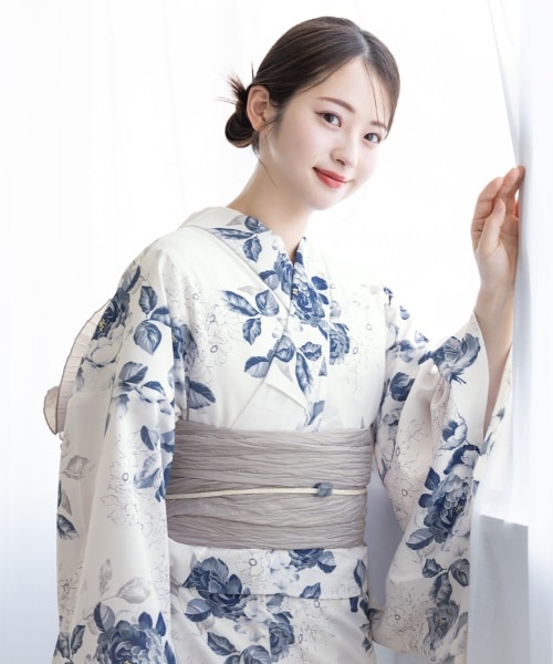 洋服のように簡単に着られるセパレートタイプの浴衣セット。クシュッと可愛い兵児帯(へこおび)は、結びやすくて初心者さんにもおすすめです。