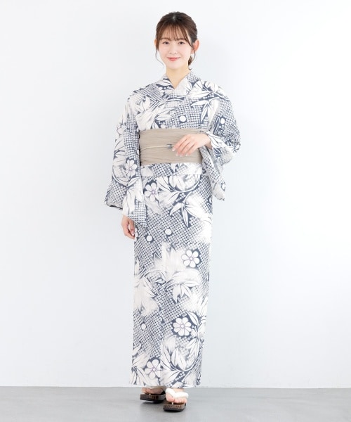 洋服のように簡単に着られるセパレートタイプの浴衣セット。クシュッと可愛い兵児帯(へこおび)は、結びやすくて初心者さんにもおすすめです。
