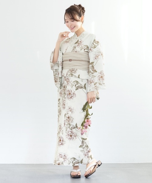 洋服のように簡単に着られるセパレートタイプの浴衣セット。クシュッと可愛い兵児帯(へこおび)は、結びやすくて初心者さんにもおすすめです。