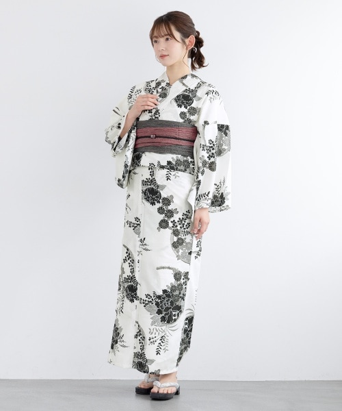 洋服のように簡単に着られるセパレートタイプの浴衣セット。クシュッと可愛い兵児帯(へこおび)は、結びやすくて初心者さんにもおすすめです。