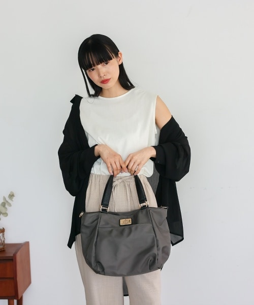 【Bags】ゴールドの輝きが女性らしさを格上げする、軽量で機能性も高いナイロントートバッグ。