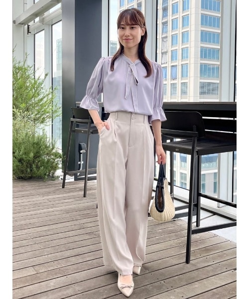 パンツスタイルでフェミニンなオフィスコーデ♪ カラーが爽やかです?