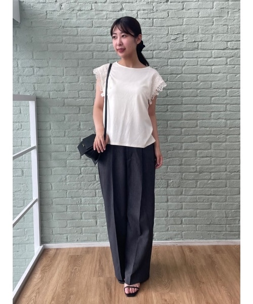 トップスをアウトで着用し、気になるヒップ周りを隠しました。