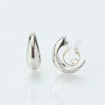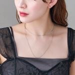ぷっくりしたイヤリングが程よい存在感。シルバーのチョーカーでモードな雰囲気に仕上げて。