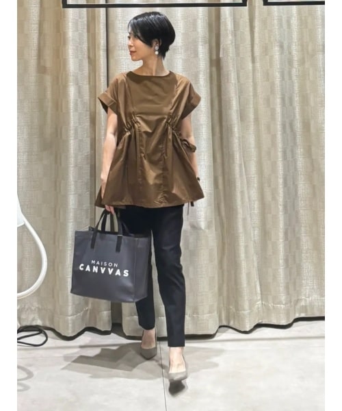 綺麗目ブラウスにハキヤセパンツを合わせました♪ トップスはウエストの切り替えで足長効果がありますよ(^^) シワになりにくくおすすめです♪
