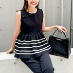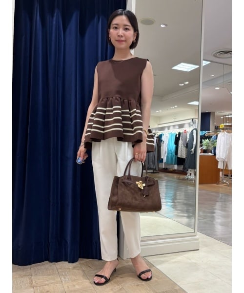 ペプラムシルエットがかわいいニットと大人気のイージーツイルパンツのテーパードタイプでコーデを組んでみました