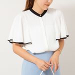 出勤コーデ お仕事ニーズで大人気バックサテンフレアスリーブブラウスで組んでみました