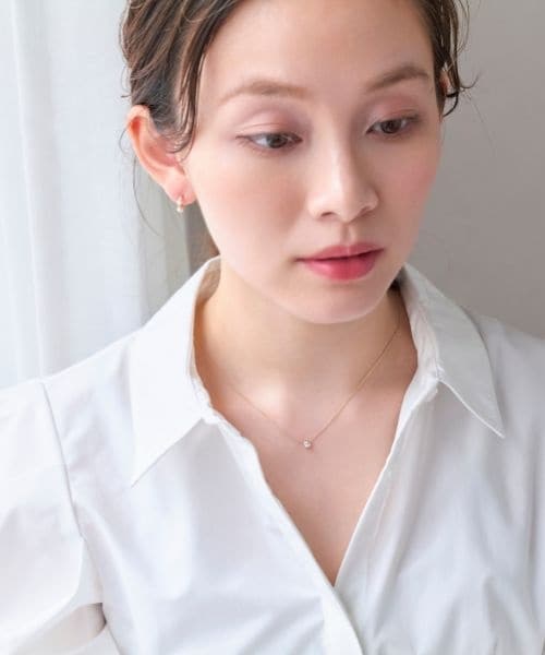 Phoebeオリジナルカラーのシャンパンゴールドのピアスとネックレス。 肌なじみが良く、上品な印象を与えてくれる人気カラーです。