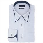 シャツオンリーの機会が多いクールビズ期の出勤をイメージし、襟元やカフスに遊びが効いたデザインをチョイス。 全体に立体感を作って垢抜けた出勤スタイルをイメージしました。 光の角度で市松模様風の光沢感が陰影するので、中々オシャレなシャツです。