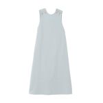 ドレープが綺麗なAラインワンピースです。肩部分とバックについた特徴的なメタルボタンがポイント。シアーニットなどに重ねてジャンパースカートとしてもお召しいただけます。見た目よりもさらりと軽い着心地で夏にもお勧めの一枚です。