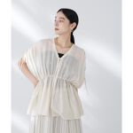 リネン混のシアーブラウスで上品さを演出した、二の腕カバーを叶えるブラウスコーデ