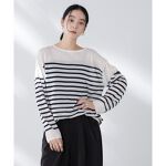 シアーのボーダートップスをアクセントにしたジレスタイル。