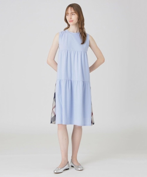 程よいティアードが大人可愛いデザインジャージドレスです。気になるおなか回りを優しくカバーしてくれるシルエットです。足元次第で、リゾートからタウンのデイリー使いなど、様々なシーンに活躍します。