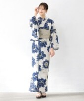 洋服のように簡単に着られるセパレートタイプの浴衣セット。クシュッと可愛い兵児帯(へこおび)は、結びやすくて初心者さんにもおすすめです。