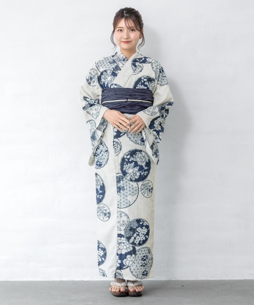洋服のように簡単に着られるセパレートタイプの浴衣セット。クシュッと可愛い兵児帯(へこおび)は、結びやすくて初心者さんにもおすすめです。