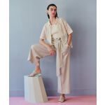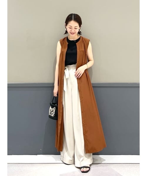 【着用サイズ いずれも:F】落ち感のあるレーヨン混素材で涼し気に仕立てたワンピース。ボタンを開けて、ロングジレとして着こなすのもオススメです。