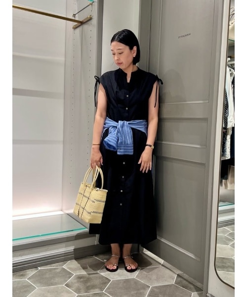 首元がキーネックですっきりなのでボタンを開けて羽織としても活躍するワンピース。