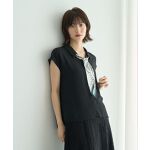 【着用サイズ ブラウス:F パンツ:M】取り外しアレンジが楽しめるスカーフ付きブラウス。スカーフはペイズリー柄のオリジナルプリントが目を惹くアクセント。