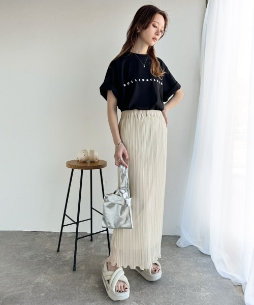 お洒落女子必見!シルケット風のシルキーな素材を用いたロゴTシャツ。 シンプルながら個性が光る立体的な厚盛プリントがポイント!