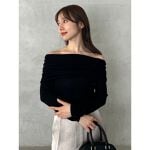 マットな透け感が特徴のフロッキートップスが、今年はオフショルダーデザインに!デコルテを綺麗により大人っぽくまとまります