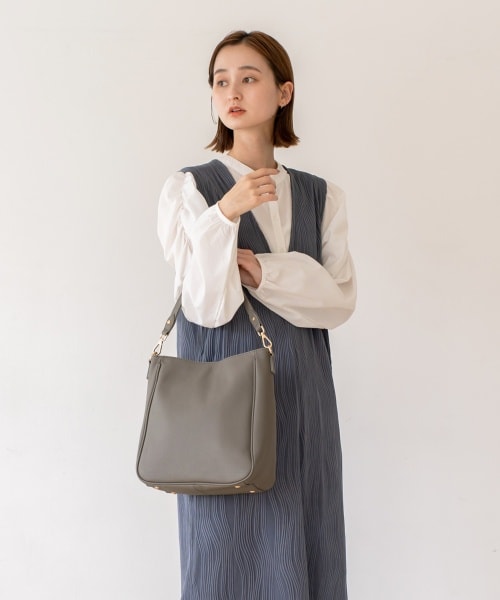 【Bag】キメの細かいシボのあるシュリンクレザーを贅沢に使用し、上品な雰囲気になるバッグ。