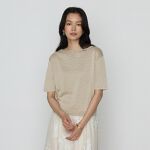 麻が入ったラメニットとデニムを合わせたきれいめカジュアルに着やすいコーディネートです。 キャップとニットバックで小物をプラスしました。