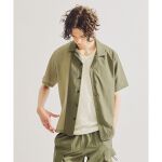 上品な光沢感が主役の開襟シャツに快適メッシュスラックスを合わせたリラックスサマースタイル