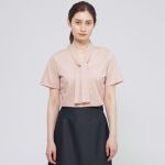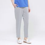 トップスは柔らかな風合いの綿糸とストレッチ性のあるポリエステル糸を使用した素材を使用しています。ジャージ素材ながらも布帛のようなハリ感と滑らかな表面をもつ素材です。着心地の良さとさらっとした肌触りが特徴です。パンツは裾に向かって細見えするシルエットのテーパードパンツです。