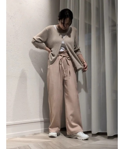 腰張さんでも安心な着心地のハイウエストパンツ!何よりしっかり長さがあるので高身長の方に特にオススメです。サマーニットと合わせてゆるっとカジュアルに。