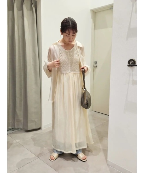 淡色コーデはデニムをレイヤードしたり、 小物で色を変えるとメリハリがでて◎です! ワンピースの丈感がパンツとレイヤードで合わせると また絶妙に可愛い、、、