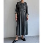 パフスリーブのやわらかな印象と、ロング丈のギャザーシルエットが絶妙なバランスで、大人らしい抜け感を演出するワンピース。